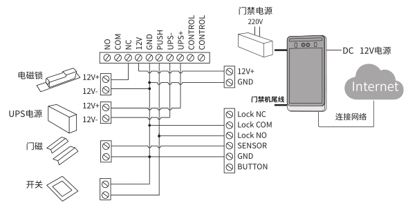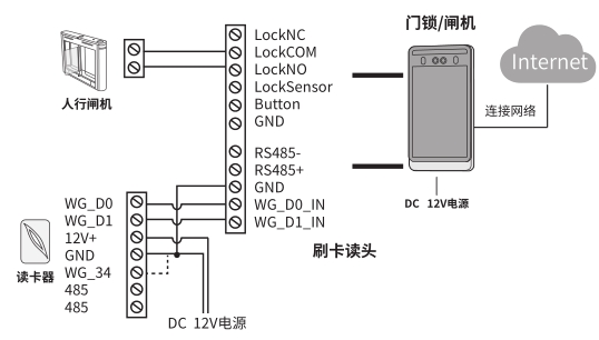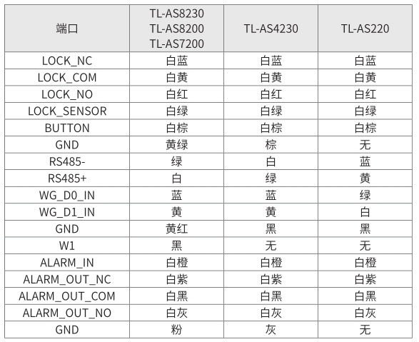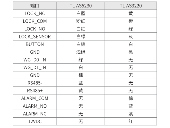 1. 当读卡器为TL-CR100时,如使用韦根26,需要读卡器黄色WG_26接地;如使用韦根 34,断开读卡器黄色 WG_26 线即可。2. 若使用其他品牌读卡器,请按其说明书搭配接线。3. 如果门禁一体机使用门禁电源供电,我司部分门禁一体机使用的是5.5mm的 DC 座,无法直接与门禁电源接线,可增加 DC 转接头,避免破坏设备尾线。